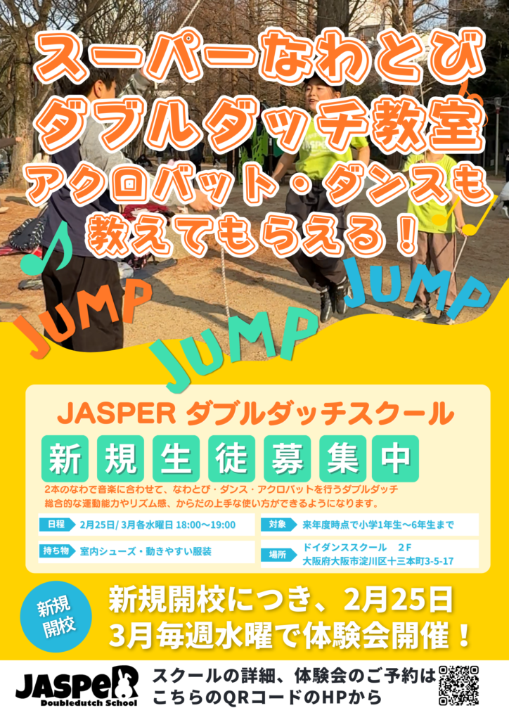 2026年3月より JASPERダブルダッチスクール「十三校」「関目校」 が新しく開校致しました!